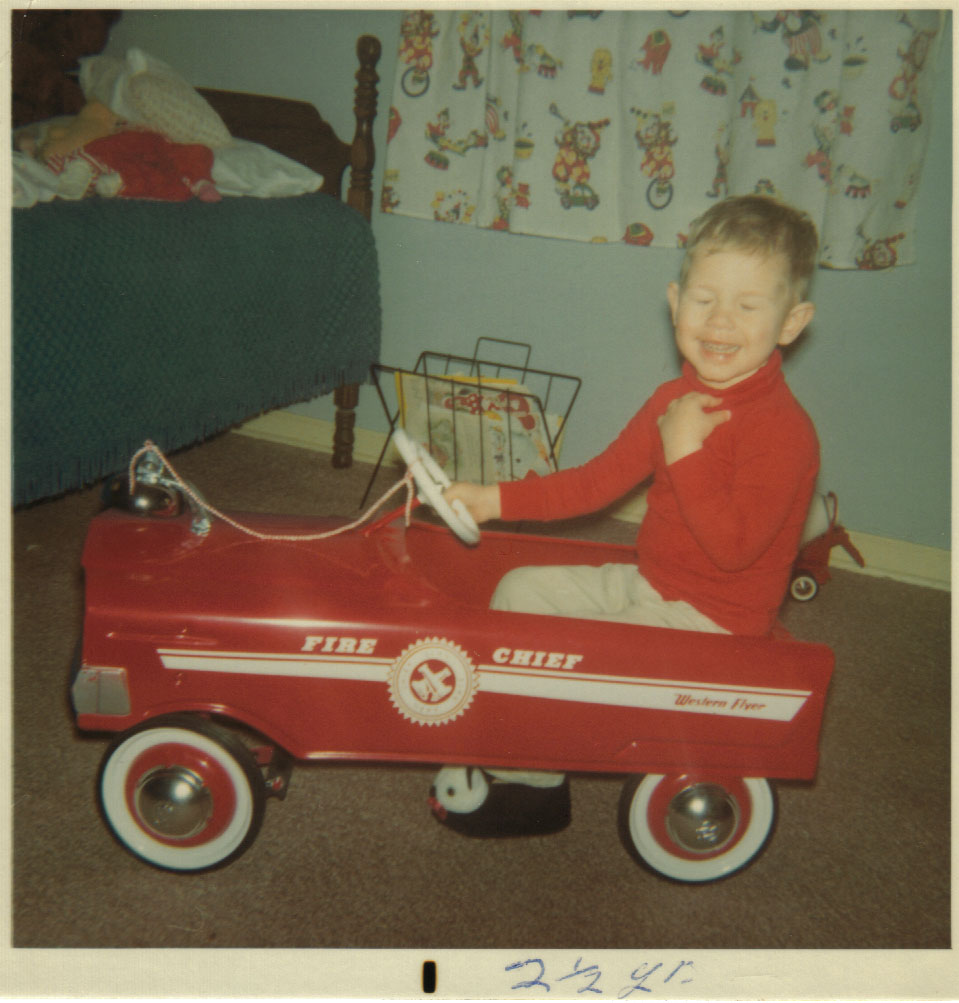 4. Long before the Big Wheel there was this Fire Chief pedal car. At our first house in Enid we had a covered patio between the back door and the detached garage and I would burn circles in that concrete in this car. I’ll never forget the day one of the pedal rods gave out and I coasted out of my circle to the back porch like an Indy driver who’d blown a motor heading for the pits. Sadly, the car was never repaired and one day a few years later I left it too close to the curb and the trash men picked it up. And yes, that is me in the car.